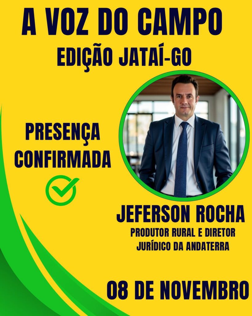 Jeferson Rocha – Advogado do Agro e Diretor Jurídico da ANDATERRA (Associação Nacional de Defesa dos Agricultores, Pecuaristas e Produtores da Terra)